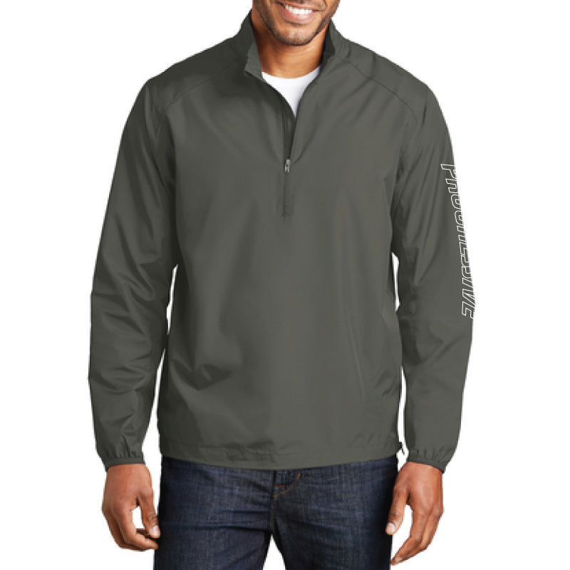 We’re getting winded just thinking about all the benefits of this 1/2 zip pullover. Water slides off of it, it’s easy to layer, and we think it’s pretty stylish too.